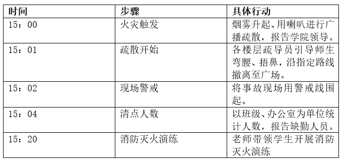 4. 汇报人在人员疏散完毕后迅速清点人数(员工以宿舍为小组;教师以办公室为单位,分别向班长/公司书记汇报)